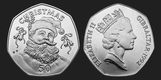 Gibraltar’s 50p Christmas coins are a festive numismatic tradition that began in 1988. Over the years, these coins have showcased a variety of seasonal themes, from religious imagery to playful winter scenes featuring Christmas favourites. Issued annually, they combine artistic detail with holiday spirit, making them a cherished part of many collectors’ Christmas celebrations.