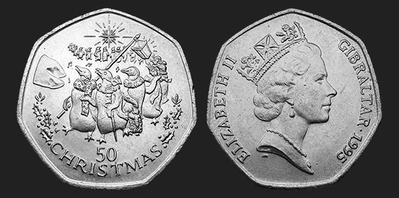 Gibraltar’s 50p Christmas coins are a festive numismatic tradition that began in 1988. Over the years, these coins have showcased a variety of seasonal themes, from religious imagery to playful winter scenes featuring Christmas favourites. Issued annually, they combine artistic detail with holiday spirit, making them a cherished part of many collectors’ Christmas celebrations.