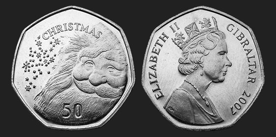 Gibraltar’s 50p Christmas coins are a festive numismatic tradition that began in 1988. Over the years, these coins have showcased a variety of seasonal themes, from religious imagery to playful winter scenes featuring Christmas favourites. Issued annually, they combine artistic detail with holiday spirit, making them a cherished part of many collectors’ Christmas celebrations.