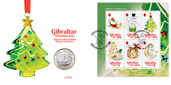 The Gibraltar Christmas 2025 50p coin depicts a view of the Rock, accompanied by a Christmas tree and Father Christmas on his sleigh. The obverse depicts the effigy of His Majesty King Charles III.